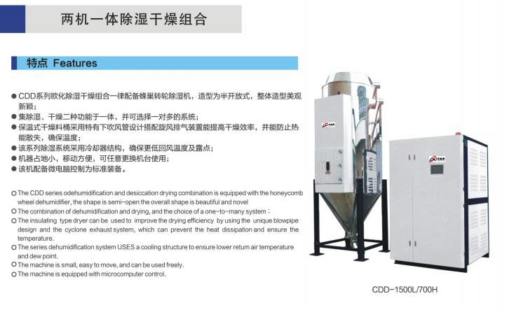 CDD系列歐化除濕干燥組合一律配備蜂巢轉(zhuǎn)輪除濕機(jī),造型為半開放式,整體造型美觀新穎; 集除濕、干燥二種功能于一體,并可選擇一對(duì)多的系統(tǒng);